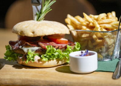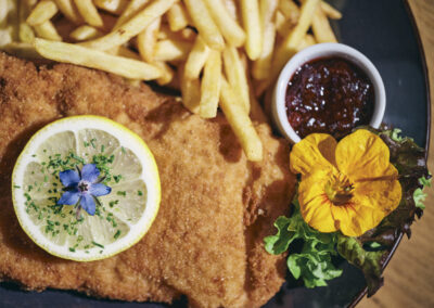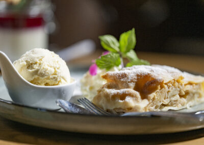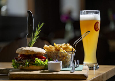 Dazu verarbeiten wir unsere Schmankerl aus der Hausmetzgerei und Produkte aus dem eigenen Garten, wie Kräuter und Obst.